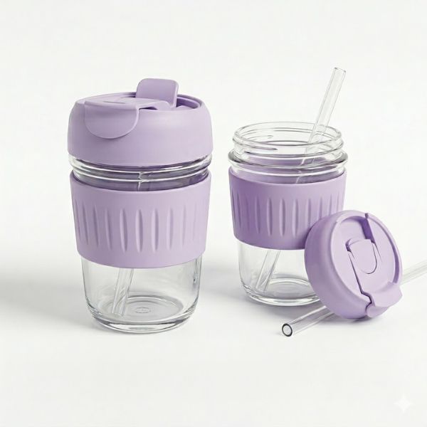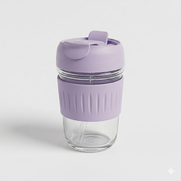 It is crafted from high-quality, durable glass and features a soft silicone grip and lid, making it comfortable to hold